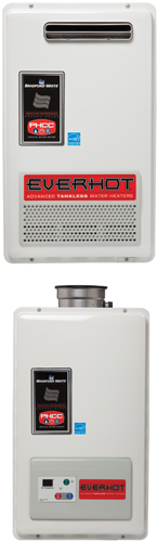 Our residential EverHot® tankless water heaters supply continuous hot water at a set temperature to the entire house. These units only operate when there's a call for hot water resulting in reduced energy consumption. These models also save space and are available for indoor or outdoor installation.